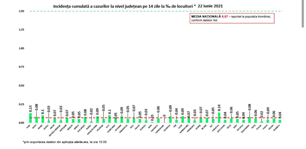 Până astăzi, 22 iunie, pe teritoriul României, au fost confirmate 1.080.323 de cazuri de persoane infectate cu noul coronavirus (COVID – 19).