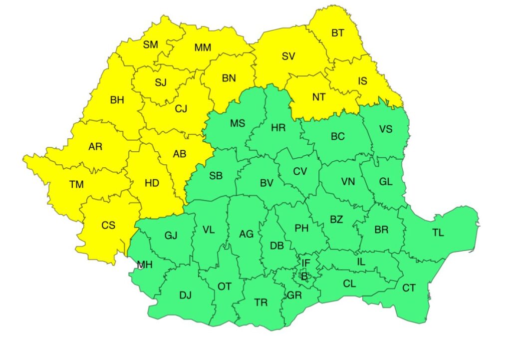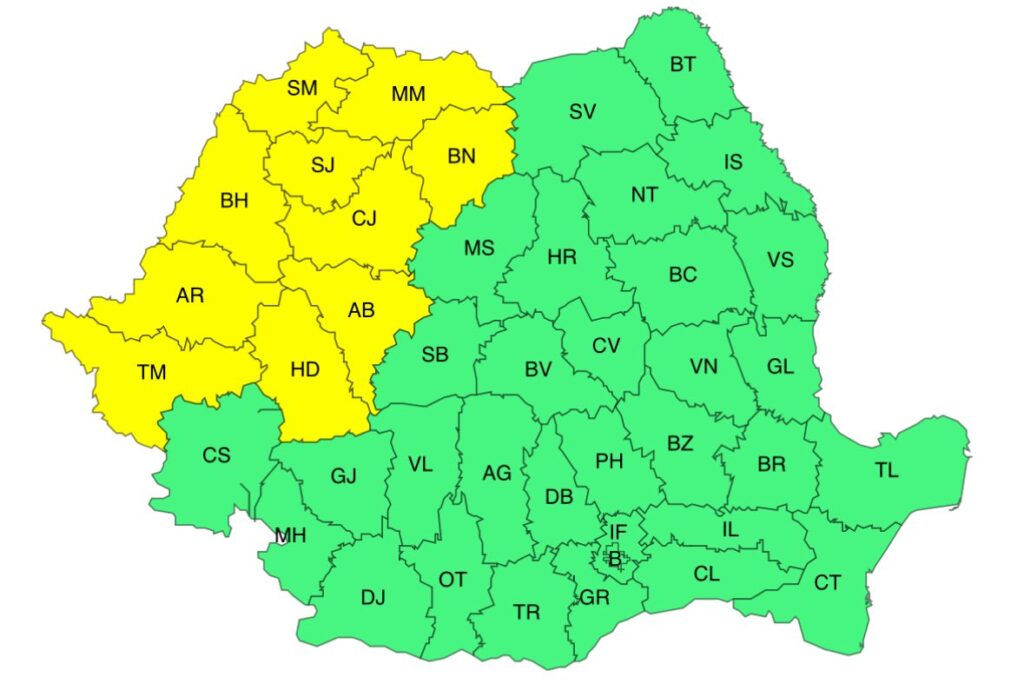 Administrația Națională de Meteorologie (ANM) a emis, vineri, noi atenționări cod galben de caniculă ce vizează județe situate în nord, vest, nord-vest și nord-est. Printre județele afectate se numără și Bistrița-Năsăud.