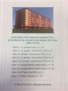 În plus, primarul din Beclean mai precizează că asminsitrația locală pregătește documentațiile pentru finanțarea celorlalte blocuri din oraș, singura condiție fiind aceea ca oamenii să se grupeze și să înființeze asociații de proprietari. ”Contribuția fiecărei familii va fi de maxim 5%, restul de 95% din costurile lucrărilor fiind suportate de către Primăria Beclean și Uniunea Europeană” mai adaugă Nicolae Moldovan.