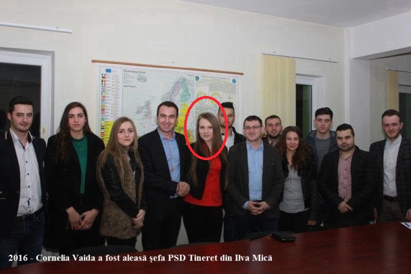 O cheamă Cornelia Vaida și e consiliera primarului Ovidiu Crețu. Tânăra blondă are 24 de ani și este președinta Organizației PSD-ului „aripa tineret” din Ilva Mică. Domnișoara Vaida a fost angajată din voia primarului, fără concurs… cum de altfel este cazul în privința consilierilor personali.