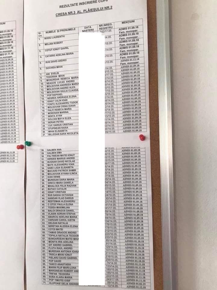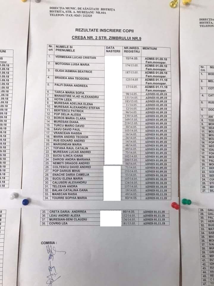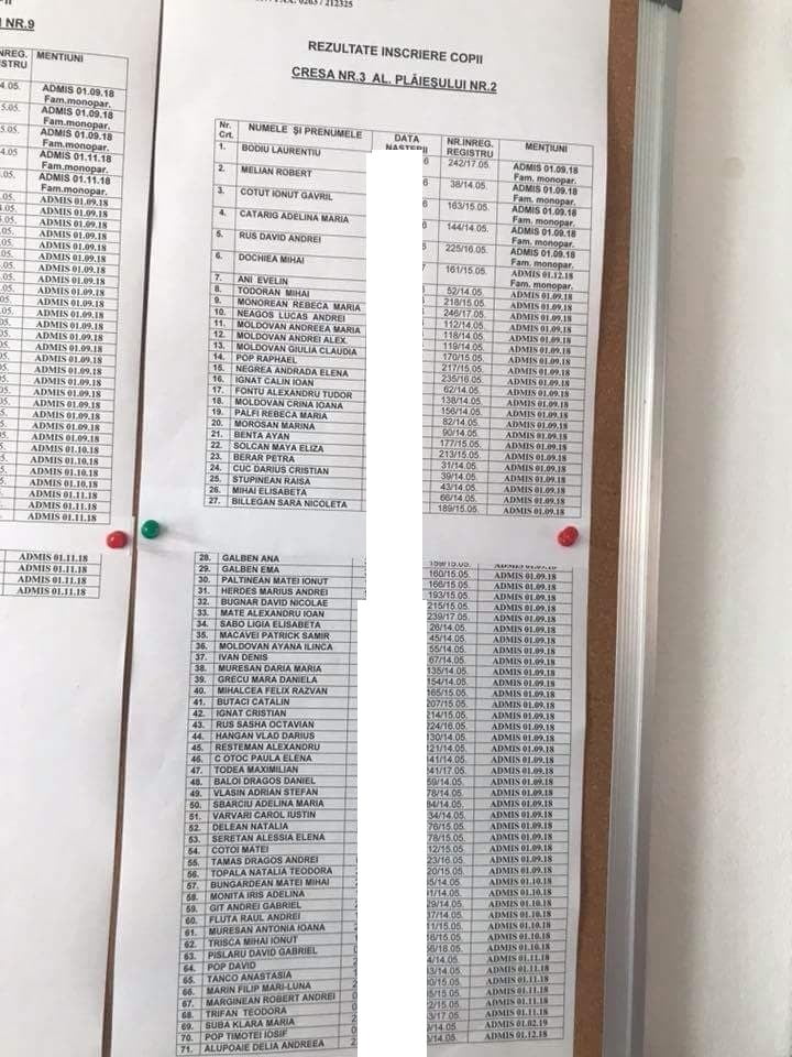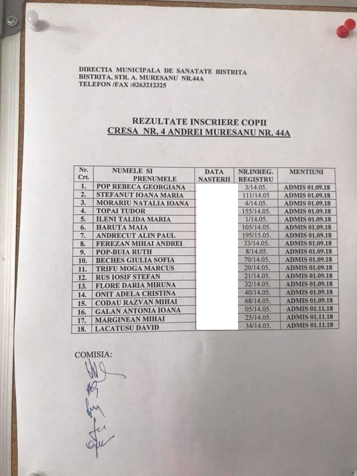 Pentru anul școlar 1 septembrie 2018 – 31 august 2019 au fost disponibile peste 170 de locuri și în total au fost depuse 261 de solicitări. Doar dosarele a 9 copilași au fost respinse fie din cauză că părinții nu aveau domiciliul în Bistrița, fie pentru că dosarele nu erau complete și lipseau unele documente.