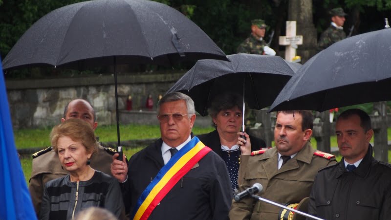 Foarte bine ca in sfarsit, ziua eroilor se sarbatoreste la Cimitirul Eroilor Bistrita, unul din cele mai bine realizate din Romania si nu la controversatul monument in forma de „Sula” amplasat langa „Prefectura”, fara nici o noima, pe locul de unde in 2009 un primar incult a mutat statuia lui Petru Rares, numai pentru a satisface comoditatea politicienilor de astazi de a nu se mai deplasa la locul unde isi dorm somnul de veci eroii neamului. Este o revenire la normalitate mai ales ca in Cimitirul Eroilor din Bistrita a fost amplasat cu cativa ani in urma si monumentul Eroilor din Dealul Crucii, si tot aici isi doarme somnul de veci si sublocotenentul post-mortem Cristian Petru Filip, care si-a pierdut viata in Afganistan. Asadar, eroii au nume adevarate iar locul lor in cartea vesniciei a fost castigat cu jertfa. Să nu-i uităm pe eroii şi pe martirii Neamului românesc, asa cum ne îndemna şi versurile lui Nicolae Iorga: