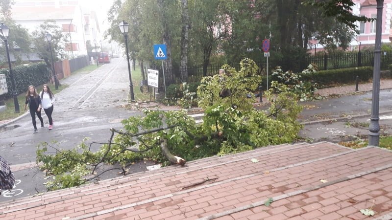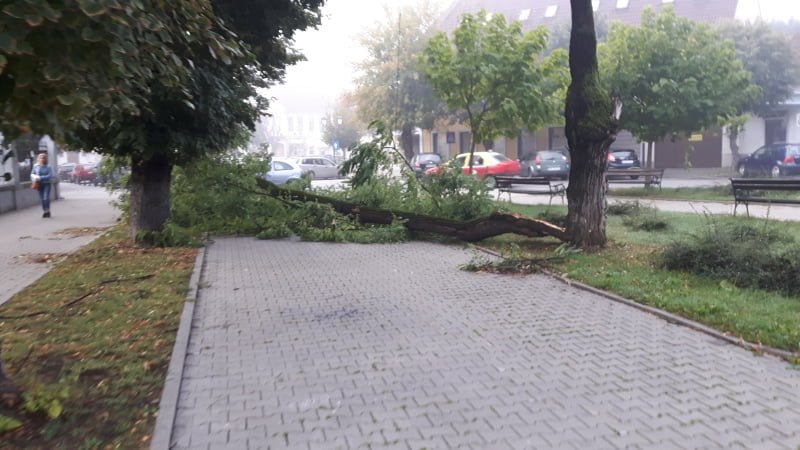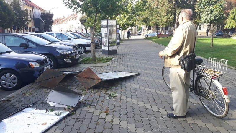 În zona Bisericii Evanghelice s-au desprins două bucăți de bordură din stâlpul central al unui geam lateral și au căzut mai multe țigle. Nimeni NU a fost rănit de bucățile căzute de la înălțime. Tot acolo, s-au rupt două crengi imense ale unor castani bătrâni.