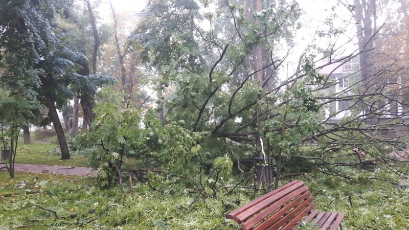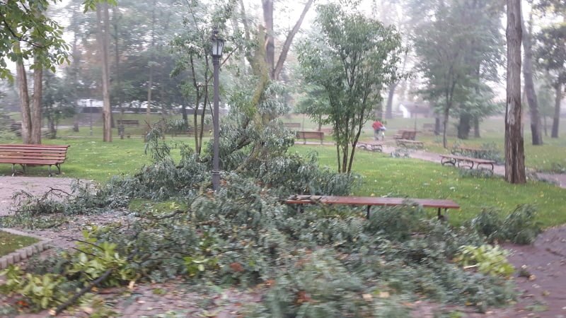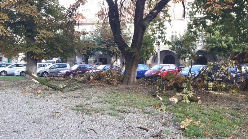 În Piațeta Bisericii de la Coroana s-a rupt o creangă ce a căzut pe aleea principală. Situație similară a avut loc în părculețul de pe strada Grigore Bălan (în zona capelei Cimitirului Evanghelic).