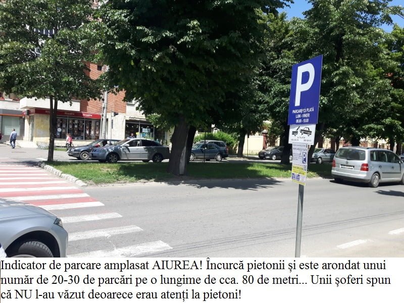 Șoferii din alte localități habar NU au că se taxează parcarea de pe Bulevard, deoarece NU există plăcuțe care să indice acest lucru Indicatoarele sunt la 50 – 60 de metri distanță, fapt care face imposibil ca un șofer să sesizeze acest aspect, mai ales la orele de vârf!
