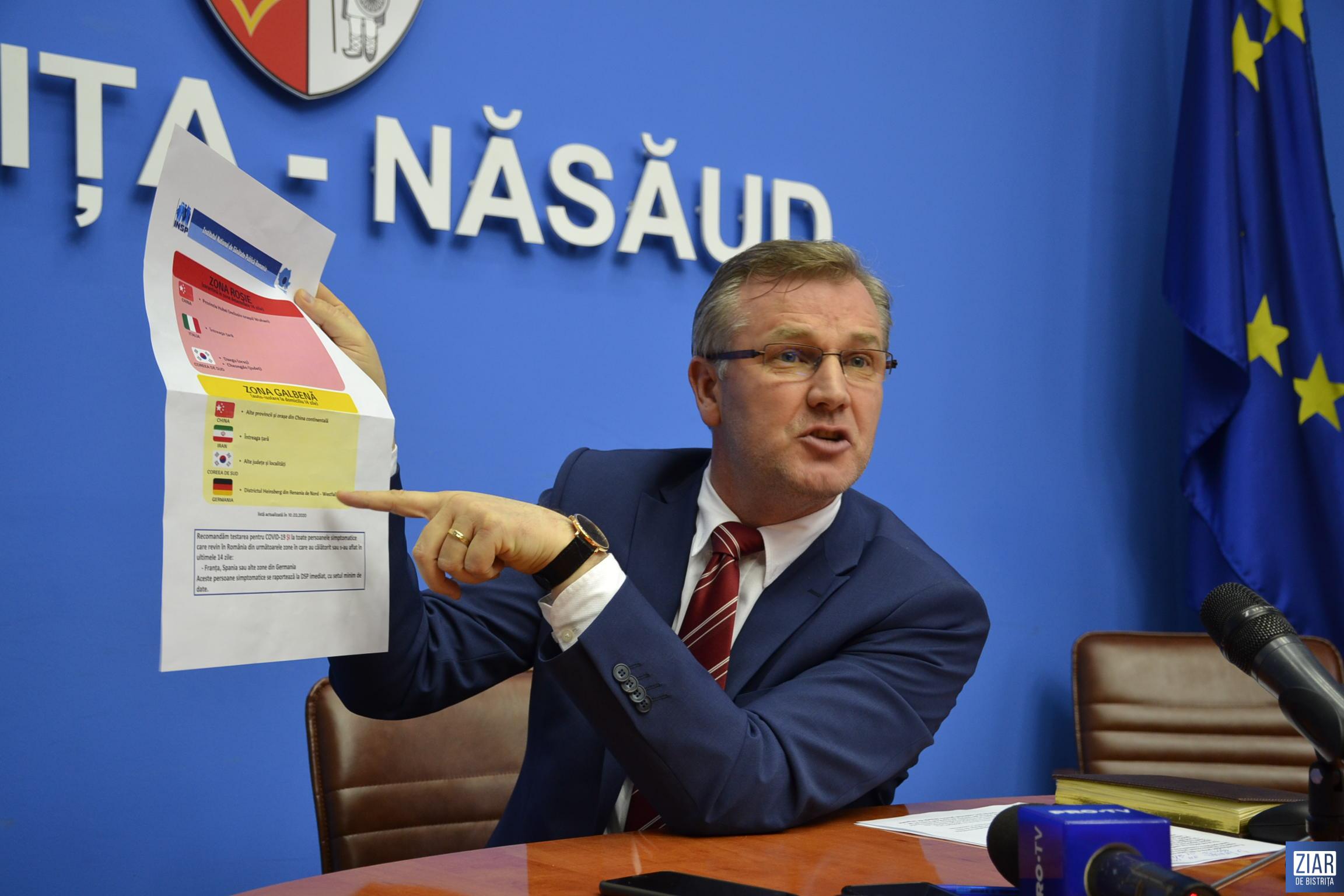 Prefectul județului Bistrița-Năsăud, Stelian Dolha, a vorbit, vineri, într-o conferință de presă, despre situația actuală privind persoanele aflate în carantină sau în izolare la domiciliu pe teritoriul județului, precizând că până în acest moment nu există niciun caz confirmat de infecție cu noul coronavirus în Bistrița-Năsăud. De asemenea, autoritățile au trimis spre analiză peste 40 de probe, iar acum așteaptă rezultatele acestora.