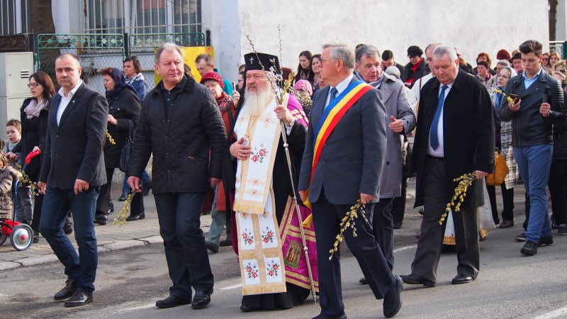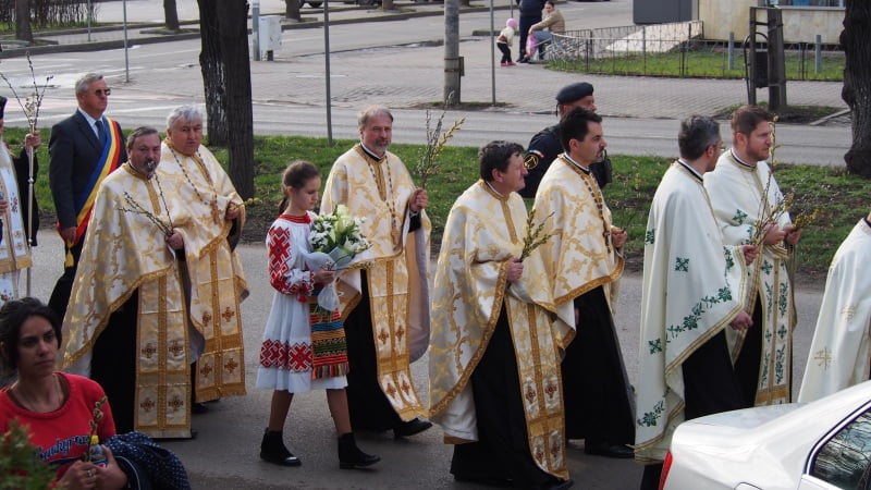 Procesiunea a început la orele 17, la biserica cu hramul ”Sfinții Trei Ierarhi ” de pe strada A. Odobescu, unde Înaltpreasfințitul a binecuvântat ramurile de salcie care au fost oferite credincioșilor. După aceea, credincioșii au plecat în alai, pe următorul traseu: str. A.Odobescu, Bulevardul Republicii, P-ța Petru Rares, P-ța Unirii – Protopopiatul Ortodox, biserica de la ”Coroana”.