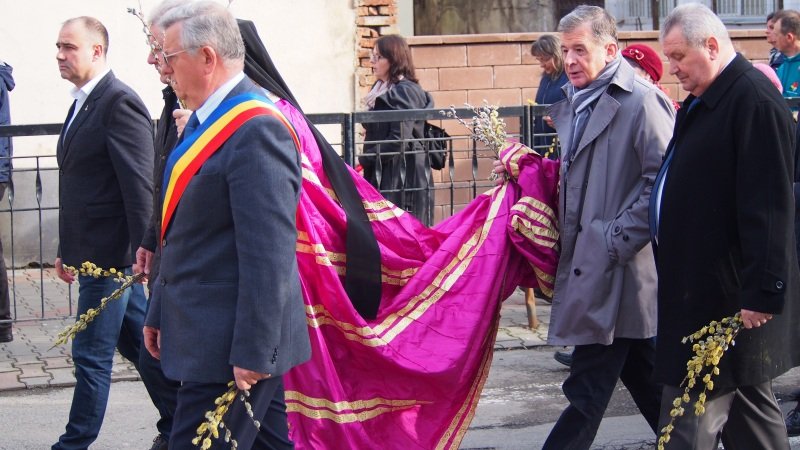 La Procesiune de Florii, sute de credincioși au mărșăluit astăzi pe străzile din Bistrița, alături de Mitropolitul Andrei și de preoții din Protopopiat.