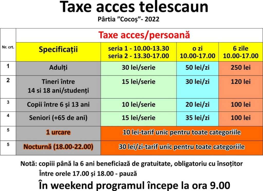 În ceea ce privește tarifele, acestea sunt următoarele: